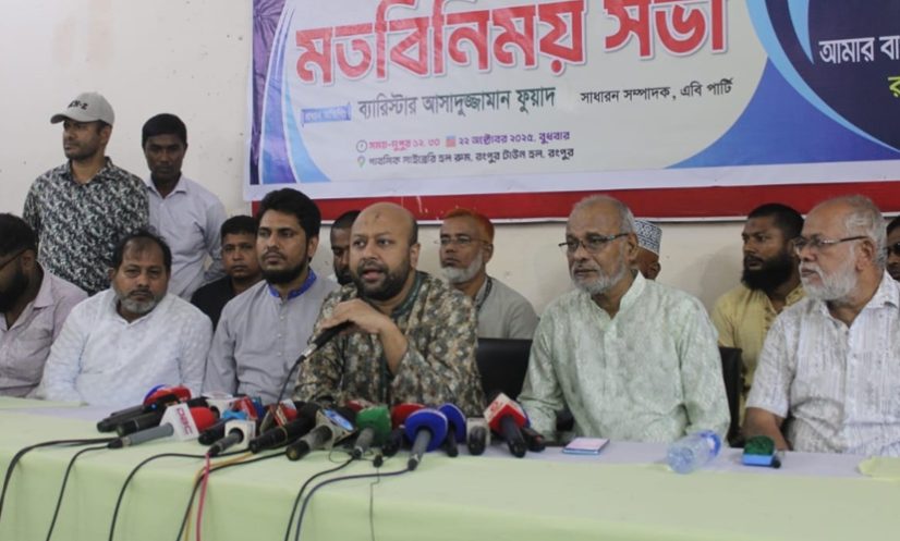 রংপুর: অবৈধ কর্মকাণ্ডে জড়িত উপদেষ্টাদের জেলে যেতে হতে পারে বলে মন্তব্য করেছেন আমার বাংলাদেশ (এবি) পার্টির কেন্দ্রীয় সাধারণ সম্পাদক ব্যারিস্টার আসাদুজ্জামান ফুয়াদ।