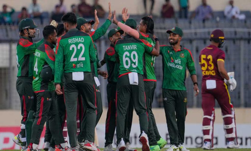 সিরিজ নির্ধারণী ম্যাচে মিরপুরে মুখোমুখি বাংলাদেশ-ওয়েস্ট ইন্ডিজ। প্রথমে ব্যাটিংয়ে নেমে মিরপুরের কালো উইকেটে ক্যারিবিয়ানদের বিপক্ষে ২৯৬ রানের বিশাল পুঁজি পেয়েছে বাংলাদেশ। সেই লক্ষ্য তাড়া করতে নেমে নাসুম আহমেদের ঘূর্ণি তোপে ৫০ রানের আগেই ৪ উইকেট হারিয়ে ধুঁকছে উইন্ডিজরা।