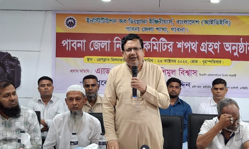 বৃহস্পতিবার ( ২৩ অক্টোবর ) পাবনা প্রেসক্লাবের মিলনায়তনে ইনস্টিটিউশন অব ডিপ্লোমা ইজ্ঞিনিয়ার্স বাংলাদেশ (আইডিইবি) পাবনা জেলা শাখার আয়োজনে পাবনা জেলা নির্বাহী কমিটির শপথগ্রহণ অনুষ্ঠানে আইডিইবি ও অবসরপ্রাপ্ত এলজিইডি উপজেলা প্রববীন সদস্য প্রকৌশলী মো. ওয়ারেছ উদ্দিনের সভাপতিত্বে প্রধান অতিথির বক্তব্যে তিনি এসব কথা বলেন।