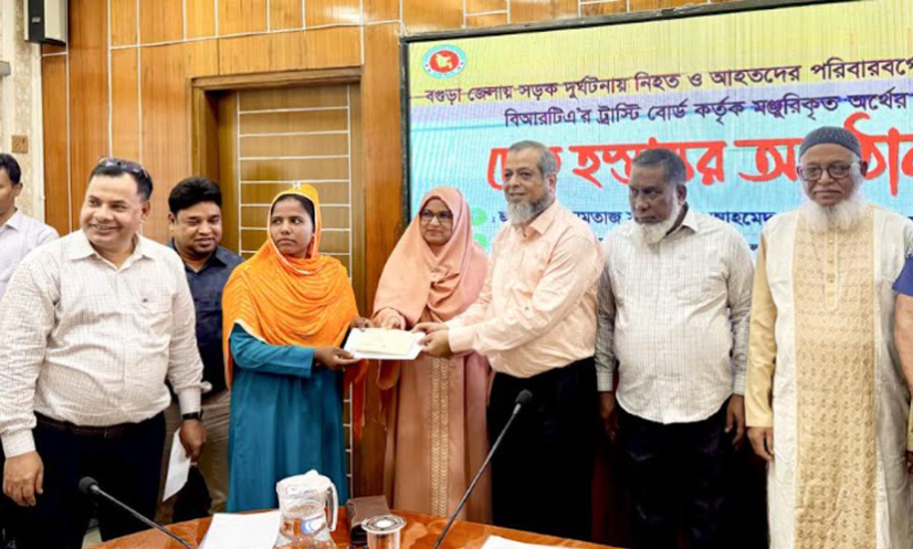 অনুষ্ঠানে বগুড়ায় সড়ক দুর্ঘটনায় নিহত ১৬ জনের পরিবারের সদস্যদের ৫ লাখ করে টাকা ও আহত একজনের হাতে ক্ষতিপূরণ হিসেবে এক লাখ টাকা সর্বমোট ৮১ লাখ টাকার চেক তুলে দেন বিআরটিএ চেয়ারম্যান। এ নিয়ে চলতি বছরের জেলায় ৪৯ জনকে মোট ২ কোটি ২৭ লাখ টাকার চেক হস্তান্তর করা হয়েছে।