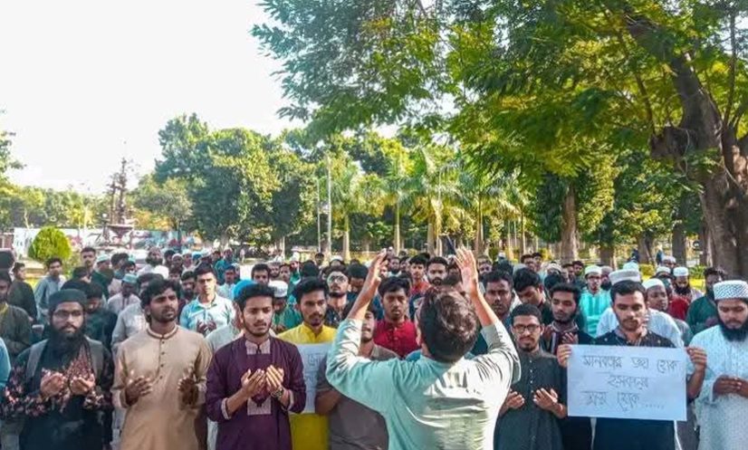 দেশব্যাপী মুসলিম নারীদের ধর্ষণ, সম্মানিত আলেমদের গুম, উগ্র হিন্দুত্ববাদী ইসকনের অপতৎপরতা ও প্রশাসনের নির্লিপ্ততার প্রতিবাদ এবং ইসকন নিষিদ্ধের দাবিতে বিক্ষোভ করেছেন রাজশাহী বিশ্ববিদ্যালয়ের (রাবি) শিক্ষার্থীরা।