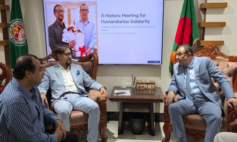 এ সময় ফিলিস্তিনের রাষ্ট্রদূতকে চট্টগ্রাম নগরবাসীর পক্ষ থেকে সংহতির প্রতীকী স্মারক উপহার দেন। জবাবে রাষ্ট্রদূত ইউসুফ রামাদান ফিলিস্তিনি জনগণের সংগ্রামে বাংলাদেশের অব্যাহত সমর্থনের প্রশংসা করেন।