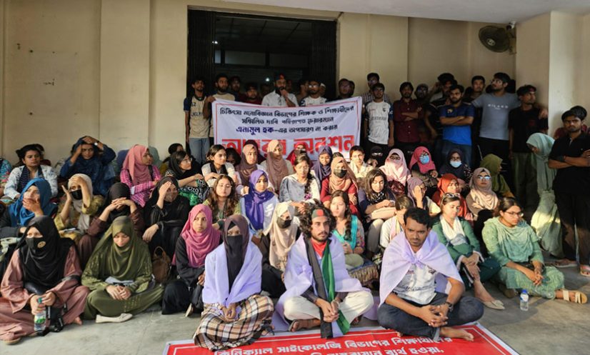 এ সময়, ‘দফা এক দাবি এক, চেয়ারম্যানের পদত্যাগ’, ‘এক দুই তিন চার, চেয়ারম্যান তুই গদি ছাড়’, ‘বহিরাগত চেয়ারম্যান মানি না, মানবো না’, ‘সাইকোলজির আধিপত্য, মানি না মানবো না’, ‘বৈষম্য নিপাত যাক, সিন্ডিকেট মুক্তি পাক’, ‘সাইকোলজির আধিপত্য ভেঙে দাও গুড়িয়ে দাও’, ‘ক্লিনিক্যালের বাংলায় সাইকোলজির ঠাঁই নাই’, ‘ডিপার্টমেন্টে রাজনীতি চলবে না চলবে না’ এমনসব স্লোগান দেন তারা।