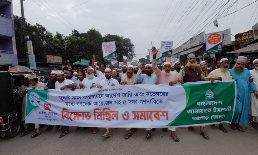 সোমবার (২৭ অক্টোবর) বিকেলে জামায়াতে ইসলামী বাংলাদেশ পঞ্চগড় জেলা শাখার আয়োজনে দলীয় কার্যালয় থেকে একটি বিক্ষোভ মিছিল বের হয়। পরে শহরের চৌরঙ্গী মোড়ে এসে সংক্ষিপ্ত সমাবেশ অনুষ্ঠিত হয়।
