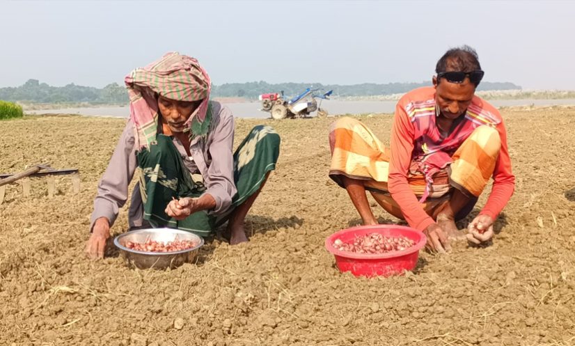 রাজবাড়ীতে মুড়িকাটা পেঁয়াজ রোপনে ব্যস্ত চাষিরা। ছবি: সারাবাংলা