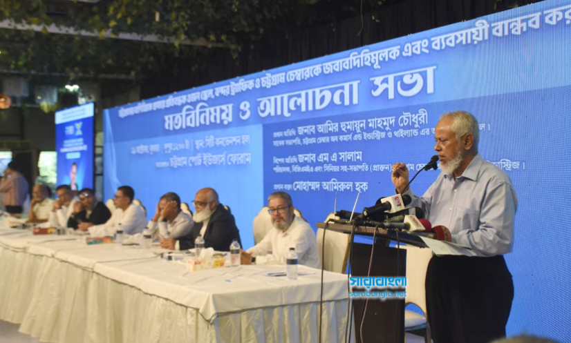 বুধবার (২৯ অক্টোবর) দুপুরে নগরীর আগ্রাবাদ এক্সেস রোডে একটি কনভেনশন হলে আয়োজিত মতবিনিময় সভায় এ তথ্য জানিয়েছেন চট্টগ্রাম পোর্ট ইউজার্স ফোরামের সভাপতি আমীর হুমায়ুন মাহমুদ চৌধুরী। চট্টগ্রামের বাণিজ্যিক প্রসারে প্রতিবন্ধক ওজন স্কেল, বন্দর ট্রাফিক এবং চিটাগং চেম্বারকে জবাবদিহিমূলক ও ব্যবসায়ীবান্ধব করার বিষয়ে আলোচনার জন্য এ সভার আয়োজন করেন ‘চট্টগ্রাম পোর্ট ইউজার্স ফোরাম’।
