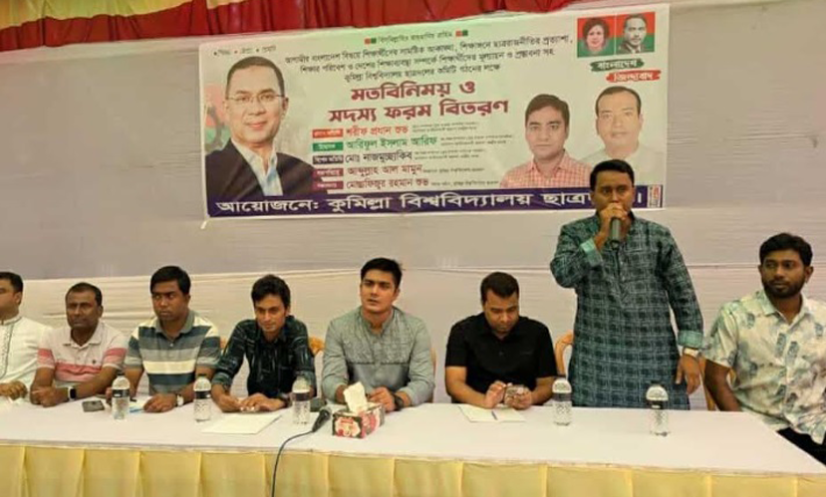 কুবি: নতুন কমিটি গঠনের লক্ষ্যে কুমিল্লা বিশ্ববিদ্যালয় ছাত্রদলের মতবিনিময় সভা ও সদস্য ফরম বিতরণ করা হয়েছে। সোমবার (৪ নভেম্বর) বিশ্ববিদ্যালয়ের ভিসি বাংলোর সামনের উন্মুক্ত স্থানে কুবি ছাত্রদলের উদ্যোগে এ সভার আয়োজন করা হয়।