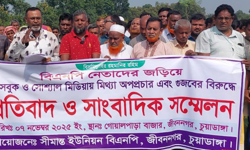 শুক্রবার (৭ নভেম্বর) বেলা ১১টায় গোয়ালপাড়া বাজারে সীমান্ত ইউনিয়ন বিএনপির আয়োজনে অনুষ্ঠিত সাংবাদিক সম্মেলনে লিখিত বক্তব্য পড়ে শোনান ইউনিয়ন বিএনপির ২নং ওয়ার্ড সাধারণ সম্পাদক সাইফুর রহমান।