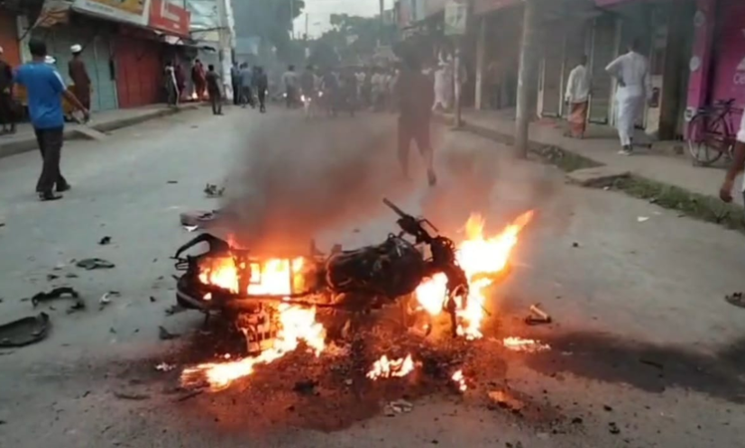 প্রায় এক ঘণ্টা সময় ধরে এই ধ্বংসযজ্ঞ চলে। খবর পেয়ে ফায়ার সার্ভিস কর্মীরা আগুন নেভাতে আসলে বিক্ষুব্ধদের প্রতিরোধের মুখে পড়ে ফিরে যায়।