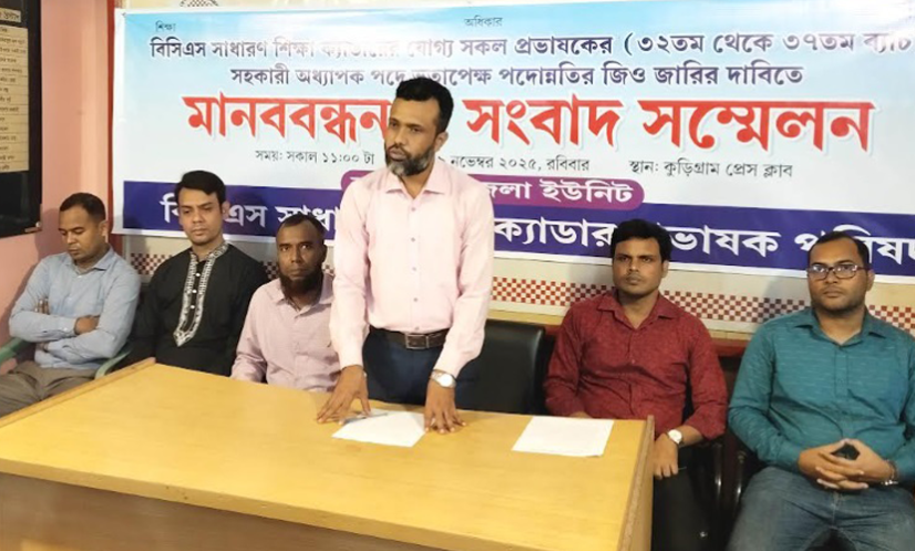 রোববার (৯ নভেম্বর) সকাল ১১টায় কুড়িগ্রাম প্রেস ক্লাব প্রাঙ্গণে এই মানববন্ধন ও সংবাদ সম্মেলনের আয়োজন করে বিসিএস সাধারণ শিক্ষা ক্যাডার প্রভাষক পরিষদের কুড়িগ্রাম জেলা ইউনিট।