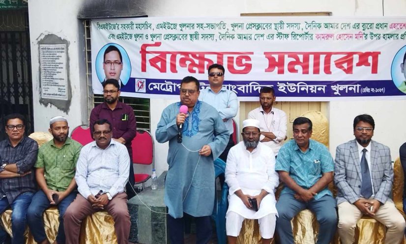 বাংলাদেশ ফেডারেল সাংবাদিক ইউনিয়ন-বিএফইউজের সহকারী মহাসচিব, মেট্রোপলিটন সাংবাদিক ইউনিয়ন (এমইউজে) খুলনার সহ-সভাপতি, খুলনা প্রেসক্লাবের স্থায়ী সদস্য দৈনিক আমার দেশ এর ব্যুরো প্রধান এহতেশামুল হক শাওন ও স্টাফ রিপোর্টার কামরুল হোসেন মনির ওপর হামলার প্রতিবাদে এ বিক্ষোভ সমাবেশের আয়োজন করা হয়।