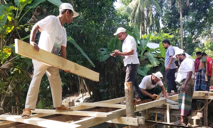 ভাঙাচোরা সড়ক ও অকেজো সেতুগুলো স্থানীয় তরুণ ও যুবকদের স্বেচ্ছাশ্রমে নতুনভাবে তৈরি করা হচ্ছে। ছবি: সারাবাংলা