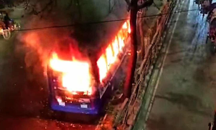জানা গেছে, বাসের পাশ দিয়ে সাত-আটজন তরুণ হেঁটে যাচ্ছিলেন। হঠাৎ বাসটিতে আগুন ধরে যায়। নাশকতা না দুর্ঘটনা তা এখনো জানা যায়নি। ঘটনাস্থলে পুলিশ উপস্থিত রয়েছে।