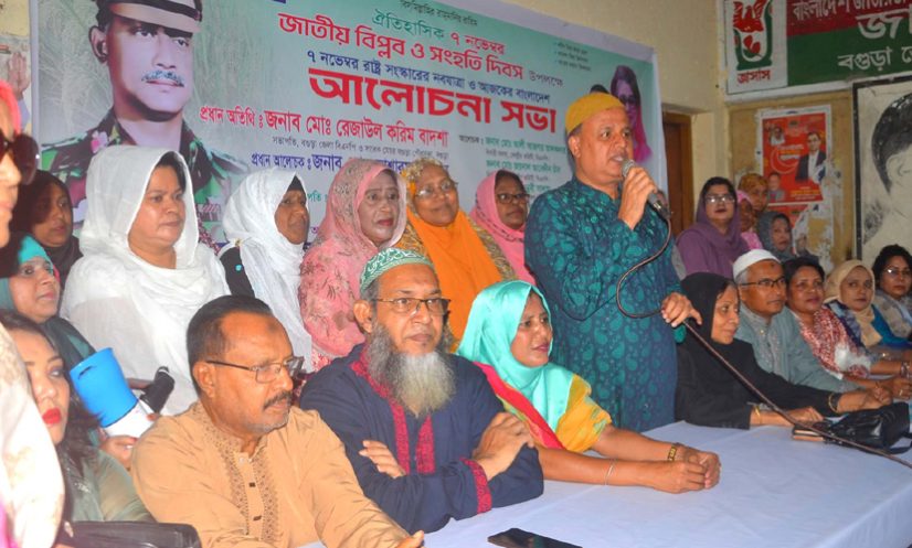 বগুড়া: বগুড়ায় জাতীয় বিপ্লব ও সংহতি দিবস উপলক্ষ্যে ৭ নভেম্বর রাষ্ট্র সংস্কারের নবযাত্রা ও আজকের বাংলাদেশ শীর্ষক আলোচনা সভা অনুষ্ঠিত হয়েছে। সোমবার (১০ নভেম্বর) সন্ধ্যায় শহরের নবাববাড়ী দলীয় কার্যালয়ে জেলা মহিলা দল এ সভার আয়োজন করে।