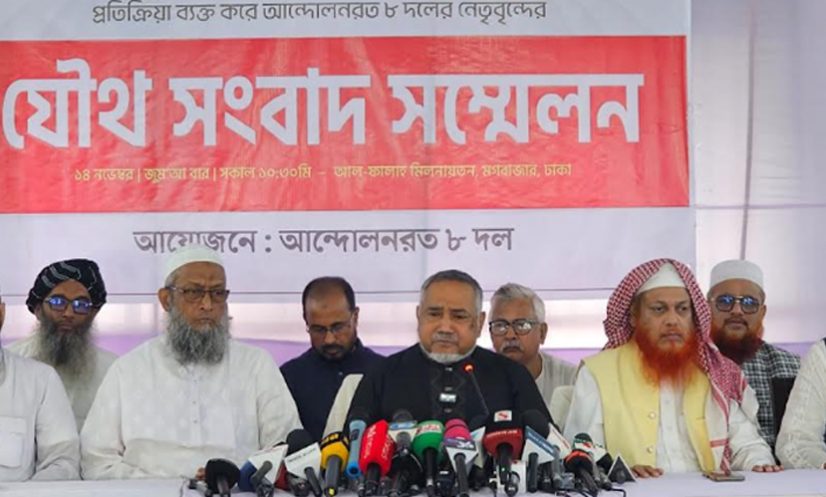 সংবাদ সম্মেলনে আট দলের নেতারা উপস্থিত ছিলেন।