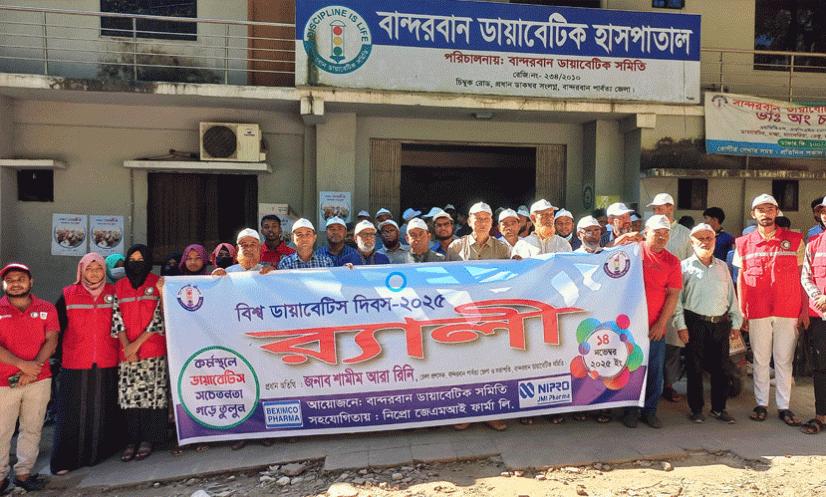 বান্দরবান: “কর্মস্থলে ডায়াবেটিস সচেতনতা গড়ে তুলুন ” এই প্রতিপাদ্যকে সামনে রেখে বর্ণাঢ্য আয়োজনে বান্দরবানে বিশ্ব ডায়াবেটিস দিবস উদযাপন করা হয়েছে।