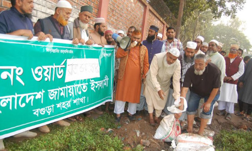বগুড়া: বগুড়া পৌরসভার ৪নং ওয়ার্ডের শেরেবাংলা নগর এলাকায় বর্ষায় ভেঙে যাওয়া রাস্তা সংস্কার করেছে জামায়াত।