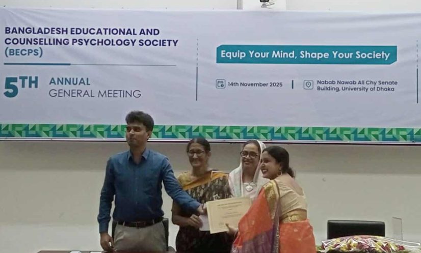 ঢাবি: অ্যাডুকেশনাল সাইকোলজি ও কাউন্সেলিং সাইকোলজি বিষয়ে এম এস এবং এম ফিল ডিগ্রি সম্পন্ন করায় একজন ও এডুকেশনাল সাইকোলজিস্ট ৩ জনকে কাউন্সেলিং সাইকোলজিস্টকে পূর্ণাঙ্গ পেশাদার সাইকোলজিস্ট হিসেবে স্বীকৃতি দিয়েছে বাংলাদেশ এডুকেশনাল অ্যান্ড কাউন্সেলিং সাইকোলজি সোসাইটি (বিইসিপিএস)।