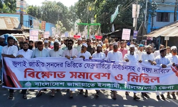 বগুড়া: জাতীয় নির্বাচনের আগে জুলাই সনদের ভিত্তিতে নভেম্বরে গণভোট, ফেব্রুয়ারিতে জাতীয় নির্বাচনসহ ৫ দফা দাবিতে বগুড়া শহরে বিক্ষোভ মিছিল ও সমাবেশ করেছে জামায়াতে ইসলামী।