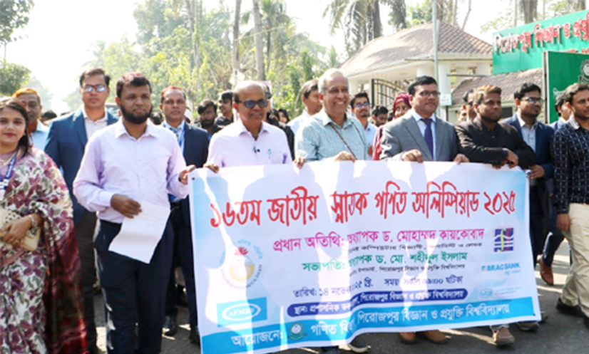 পিরোজপুর: পিরোজপুর বিজ্ঞান ও প্রযুক্তি বিশ্ববিদ্যালয়ে উৎসবমুখর পরিবেশে শুক্রবার (১৪ নভেম্বর) অনুষ্ঠিত হয়েছে ১৬তম জাতীয় স্নাতক গণিত অলিম্পিয়াড-২০২৫ এর বরিশাল অঞ্চলের প্রতিযোগিতা। এ. এফ. মুজিবুর রহমান ফাউন্ডেশনের আর্থিক সহযোগিতায় এবং বাংলাদেশ গণিত সমিতির উদ্যোগে আয়োজিত দিনব্যাপী এ প্রতিযোগিতায় বরিশাল বিভাগসহ গোপালগঞ্জ ও ফরিদপুরের ১৩টি বিশ্ববিদ্যালয়ের শিক্ষার্থীরা অংশ নেন।