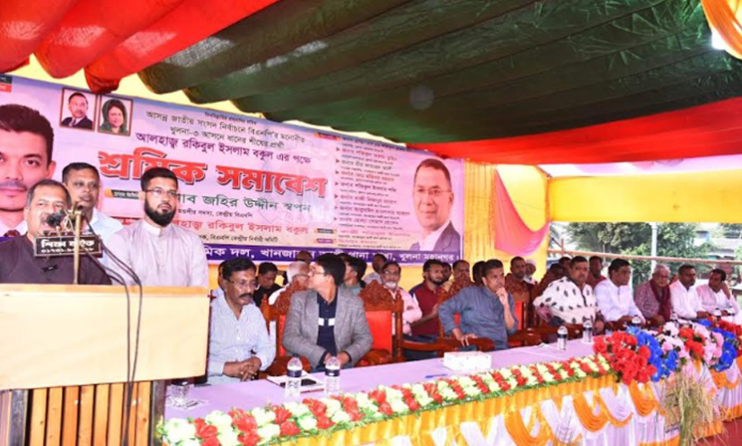 শনিবার (১৫ নভেম্বর) বিকালে খুলনা-৩ আসনে বিএনপি মনোনীত ধানের শীষের প্রার্থী রকিবুল ইসলাম বকুলের সমর্থনে বাংলাদেশ জাতীয়তাবাদী শ্রমিক দল খানজাহান আলী থানা শাখার উদ্যোগে ফুলবাড়ী গেট চত্বরে আয়োজিত এক বিশাল শ্রমিক সমাবেশে প্রধান অতিথির বক্তব্যে তিনি এসব কথা বলেন।