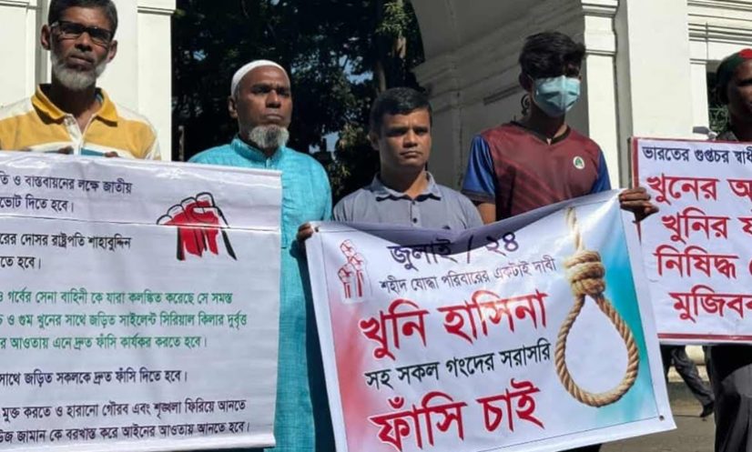 ঢাকা: জুলাই গণঅভ্যুত্থানে সংঘটিত মানবতাবিরোধী অপরাধের মামলায় ক্ষমতাচ্যুত সাবেক প্রধানমন্ত্রী শেখ হাসিনাসহ তিন জনের ফাঁসির দাবিতে ট্রাইব্যুনালের সামনে জড়ো হয়েছেন জুলাই গণঅভ্যুত্থানে শহিদ পরিবারের সদস্য ও আহতরা।