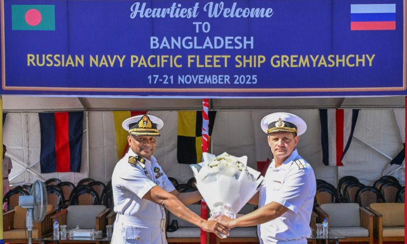 চট্টগ্রাম ব্যুরো: ৫ দিনের শুভেচ্ছা সফরে বাংলাদেশে এসেছে রাশিয়ার নৌবাহিনীর জাহাজ ‘গ্রিমিয়াশ্চি’। জাহাজটি এদেশের জলসীমায় এসে পৌঁছালে বাংলাদেশ নৌবাহিনীর জাহাজ ‘বানৌজা ওমর ফারুক’ তাদের অভ্যর্থনা জানায়।