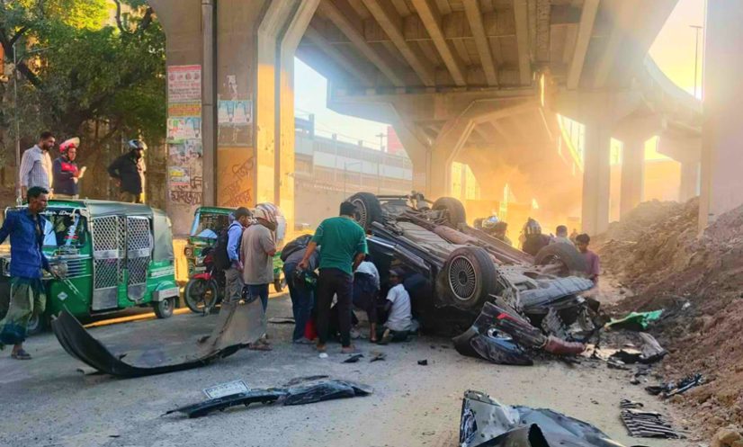 প্রত্যক্ষদর্শী এক কিশোর সারাবাংলাকে বলেন, ‘আমরা কাছেই ছিলাম। হঠাৎ বিকট শব্দ হয়। আমরা গিয়ে দেখি, ওপর থেকে রাস্তায় পড়া একটি প্রাইভেটকার কাৎ হয়ে আছে এবং সেটির চাকাগুলো ঘুরছে। সেখান থেকে ১৭-১৮ বছর বয়সী এক মেয়ে বের হয়ে আসে। পরে আমরা আরও তিনজনকে বের করি। তাদের মধ্যে দু’জনের বয়স ১৮-২০ বছর এবং চালকের বয়স আরেকটু বেশি হতে পারে।’