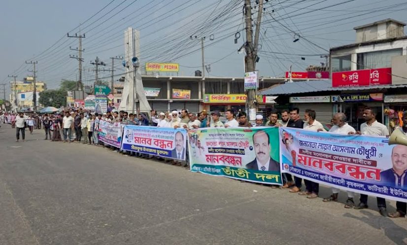 শনিবার (২২ নভেম্বর) সকালে নগরীর অলঙ্কার মোড় থেকে সীতাকুণ্ডের বড় দারোগাহাট পর্যন্ত এলাকায় ঢাকা-চট্টগ্রাম মহাসড়কে এ মানববন্ধনে অংশ নেন আসলাম চৌধুরীর হাজারো অনুসারী নেতাকর্মী ও সমর্থক।