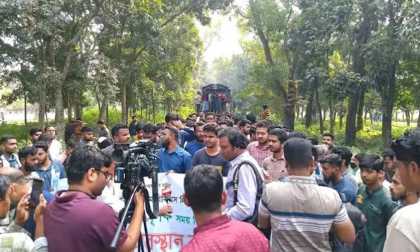 রোববার সকালে বাংলাদেশ কৃষি বিশ্ববিদ্যালয় ক্যাম্পাসের জব্বারের মোড় এলাকায় দেওয়ানগঞ্জগামী তিস্তা এক্সপ্রেস ট্রেন আটকে দিয়ে রেলপথ অবরোধ করে, পাশপাশি মহুয়া কমিউটার ও বলাকা কমিউটার ট্রেনও আটকে পড়ে।