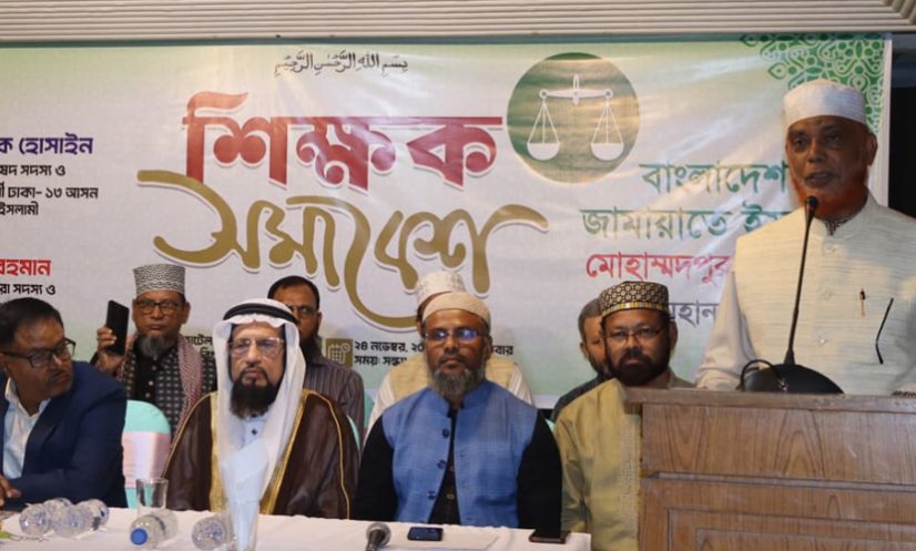 সোমবার (২৪ নভেম্বর) বিকেলে মোহাম্মদপুর (মধ্য) থানা জামায়াতের উদ্যোগে শ্যামলী প্রিন্স রেস্টুরেন্টে অনুষ্ঠিত ‘আদর্শ শিক্ষক সমাবেশে’ প্রধান অতিথির বক্তব্যে তিনি এসব কথা বলেন।