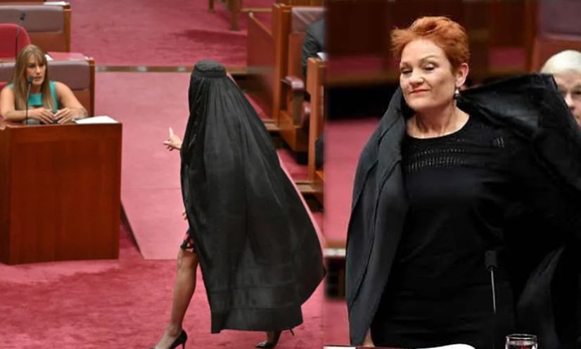 পার্লামেন্টে বোরকা পরে প্রবেশ করে দেশজুড়ে আবারও বিতর্কের জন্ম দিয়েছেন অস্ট্রেলিয়ার ডানপন্থী রাজনীতিবিদ ও ওয়ান নেশন দলের নেত্রী পলিন হ্যানসন। সোমবার (২৪ নভেম্বর) তিনি সিনেটে মুখ ঢাকা বোরকা নিষিদ্ধ করার জন্য একটি বিল উপস্থাপন করতে চাইলে অন্যান্য আইনপ্রণেতারা তাঁকে বাধা দেন। এর পরপরই তিনি একটি কালো বোরকা পরে আবারও পার্লামেন্টে ফিরে আসেন এবং নিজের আসনে বসেন।