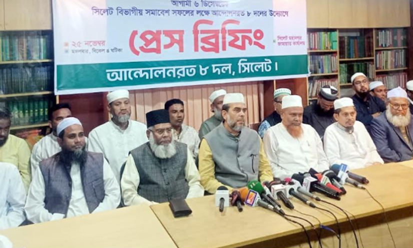 প্রেস ব্রিফিংয়ে জামায়াতের কেন্দ্রীয় সহকারী সেক্রেটারি জেনারেল অ্যাডভোকেট এহসানুল মাহবুব জুবায়ের বলেন, জুলাই গণঅভ্যুত্থান পরবর্তী বৈষম্যহীন মানবিক বাংলাদেশ বিনির্মাণে ৫ দফা দাবিতে ৮ দল যুগপৎ কর্মসূচি পালন করে আসছে। এর আলোকে দেশের ৭টি বিভাগীয় শহরে মহাসমাবেশ কর্মসূচি ঘোষণা করা হয়েছে। ৩০ নভেম্বর থেকে এসব কর্মসূচী পালিত হবে। সবশেষে ৬ ডিসেম্বর সিলেট সরকারি আলিয়া মাদরাসা মাঠে বিভাগীয় মহাসমাবেশ অনুষ্ঠিত হবে। এরই মধ্যে সিলেটে ৮ দলের ১৩ সদস্য বিশিষ্ট একটি লিয়াজোঁ কমিটি গঠন করা হয়েছে। এই কমিটির মাধ্যমে সিলেটে আগামীতে ৮ দলের সকল কর্মসূচি বাস্তবায়ন করা হবে।