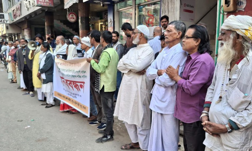 বুধবার (২৬ নভেম্বর) দুপুরে পাবনা জেলা ফকির সাধু ও বাউল শিল্পী সংস্থা আয়োজনে প্রেসক্লাবের সামনে ঘন্টাব্যাপী এই মানববন্ধন অনুষ্ঠিত হয়।