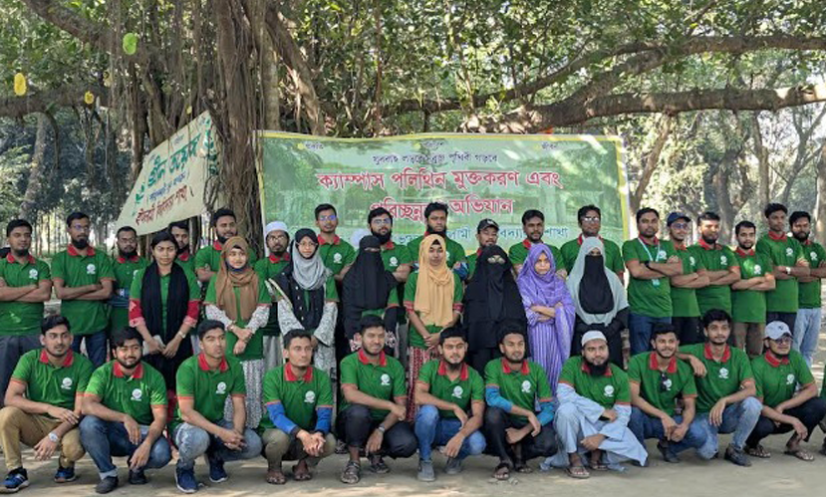 সংগঠনটির উপদেষ্টা অধ্যাপক ড. আব্দুল আল মোহিত বলেন, ‘পরিবেশের সবচেয়ে ক্ষতিকর যেটা, সেটার প্রধান কারণ হলো পলিথিন। যেখানে-সেখানে এই পলিথিন ফেলে দেওয়া হয়। এগুলো মাটির উর্বরতা নষ্ট করে, মাটির যে স্বাভাবিকতা আছে সেটা নষ্ট করে দেয়। এবং সবচেয়ে বড় সমস্যা হলো, এই পলিথিন যেখানে-সেখানে ফেলার কারণে আমাদের পুরো ক্যাম্পাসটা আসলে পলিথিনময় হয়ে গেছে। এখন আমাদের উচিত, আমরা যেখানে-সেখানে যেখানেই পলিথিন ফেলবো না। যেখানে একটা নির্দিষ্ট ডাস্টবিনের ব্যবস্থা আছে, সেখানে পলিথিনটা ফেলবো। সবার মধ্যে এই সচেতনতাটা জাগিয়ে তুলতে হবে, যেন তারা পরিবেশের গুরুত্বটা বুঝতে পারে এবং পরিবেশকে সুরক্ষিত রাখার জন্য নিজে থেকে কাজ করে।’