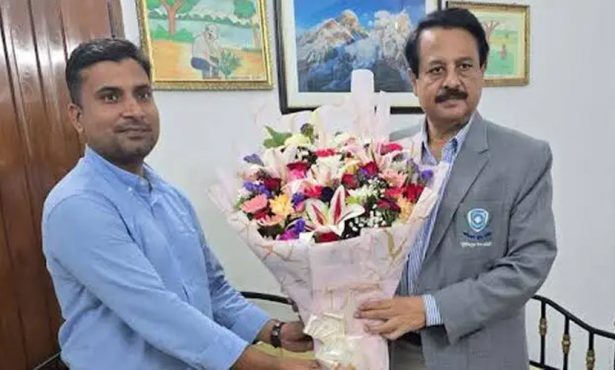 ফুলের তোড়া গ্রহণ করেন বিএনপি চেয়ারপার্সনের একান্ত সচিব জনাব এ বি এম আব্দুস সাত্তার।