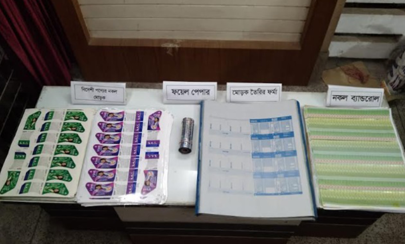 কুষ্টিয়া: কুষ্টিয়া সদর উপজেলার কোর্টপাড়ায় একটি কারখানায় অভিযান চালিয়ে নকল শুল্ক স্ট্যাম্প, ভারতীয় প্রসাধনী পণ্যের নকল স্টিকার এবং এসব তৈরির সরঞ্জামসহ দুইজনকে গ্রেফতার করেছে র্যাব-১২। অভিযানের পর কারখানাটি সিলগালা করা হয়। শুক্রবার (২৮ নভেম্বর) দুপুরে র্যাব-১২ থেকে পাঠানো এক প্রেস বিজ্ঞপ্তিতে এ তথ্য জানানো হয়।