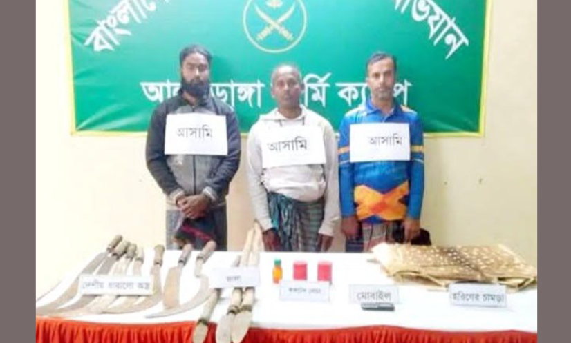 শুক্রবার (২৮ নভেম্বর) সকালে পরিচালিত এই অভিযানে দুটি ককটেল, সাতটি দেশীয় ধারালো অস্ত্র, তিনটি ফালা, একটি হরিণের চামড়া এবং একটি মোবাইল ফোন সেট উদ্ধার করা হয়।