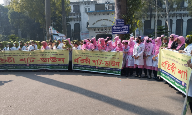 কুষ্টিয়া: ৮ দফা দাবি আদায়ে কুষ্টিয়া জেনারেল হাসপাতাল ও মেডিকেল কলেজে প্রতীকী শাটডাউন কর্মসূচী পালন করেছে নার্স ও মিডওয়াইফাররা।