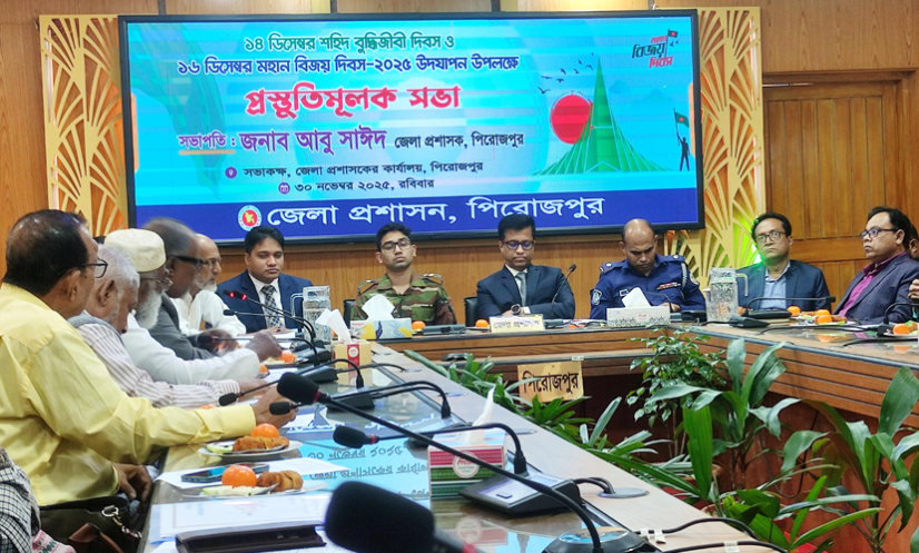 পিরোজপুর: আগামী ১৪ ডিসেম্বর শহীদ বুদ্ধিজীবী দিবস এবং ১৬ ডিসেম্বর মহান বিজয় দিবস-২০২৫ যথাযোগ্য মর্যাদায় উদযাপনের লক্ষ্যে পিরোজপুর জেলা প্রশাসনের উদ্যোগে প্রস্তুতিমূলক সভা অনুষ্ঠিত হয়েছে। রোববার (৩০ নভেম্বর) সকাল ১১টায় জেলা প্রশাসকের সম্মেলন কক্ষে জেলা প্রশাসক মোহাম্মদ আবু সাঈদের সভাপতিত্বে এ সভা অনুষ্ঠিত হয়।