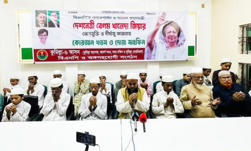 কুমিল্লা: সাবেক প্রধানমন্ত্রী ও বিএনপি চেয়ারপারসন বেগম খালেদা জিয়ার দ্রুত আরোগ্য কামনায় কুমিল্লায় দিনব্যাপী কোরআন খতম, দোয়া মাহফিল ও এতিম শিশুদের মাঝে খাবার বিতরণ করা হয়েছে।