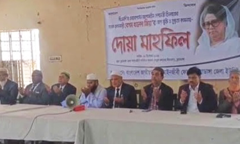 চুয়াডাঙ্গা: চুয়াডাঙ্গায় বিএনপির চেয়ারপারসন ও সাবেক প্রধানমন্ত্রী বেগম খালেদা জিয়ার রোগমুক্তি ও সুস্থতা কমনায় দোয়া মাহফিল অনুষ্ঠিত হয়েছে। মঙ্গলবার (২ ডিসেম্বর) দুপুরে জেলা আাইনজীবী সমিতি মিলনায়তনে জাতীয়তাবাদী আইনজীবী ফোরামের উদ্যোগে এ দোয়া মাহফিল অনুষ্ঠিত হয়।