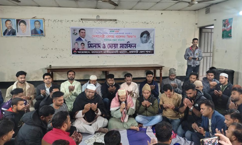 রাজবাড়ী: বাংলাদেশ জাতীয়তাবাদী ছাত্রদল রাজবাড়ী জেলা শাখার উদ্যোগে বিএনপি চেয়ারপারসন ও সাবেক প্রধানমন্ত্রী বেগম খালেদা জিয়ার দ্রুত সুস্থতা কামনায় দোয়া মাহফিল অনুষ্ঠিত হয়েছে।