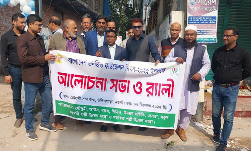 নওগাঁ: বিভিন্ন কর্মসূচির মধ্যে দিয়ে নওগাঁয় বাংলাদেশ এনজিও ফাউন্ডেশন দিবস উদযাপিত হয়েছে। দিবসটি পালন উপলক্ষ্যে মঙ্গলবার (২ ডিসেম্বর) সকালে স্থানীয় সহযোগী সংস্থা মৌসুমী’র প্রধান কার্যালয় হতে একটি র্যালি বের হয়ে শহরের প্রধান প্রধান সড়ক প্রদক্ষিণ করে।