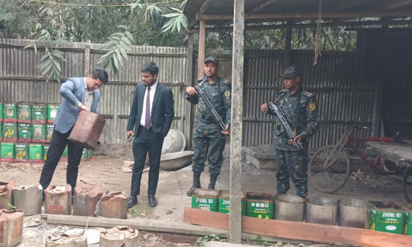 মঙ্গলবার (২ ডিসেম্বর) সন্ধায় জেলার সদর উপজেলার শিবরামপুরের ছোট বটতলা এলাকায় জেলা প্রশাসন ও নিরাপদ খাদ্য কর্তৃপক্ষ যৌথ উদ্যোগে স্বপন কুমার শীলের মালিকানাধীন ভেজাল গুড় তৈরির কারখানায় সমন্বিত মোবাইল কোর্ট পরিচালনা করা হয়।