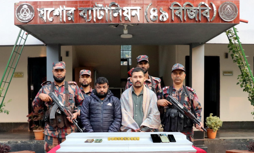 বৃহস্পতিবার (৪ ডিসেম্বর) ভোরে আনুমানিক ৫টা ৩০ মিনিটে যশোর কোতোয়ালী থানাধীন মুরাদগড় বাসস্ট্যান্ড পাকা রাস্তায় অভিযান পরিচালনা করে যশোর ব্যাটালিয়ন (৪৯ বিজিবি)-এর একটি টহলদল। এসময় দুই সন্দেহভাজন ব্যক্তিকে তল্লাশি করা হলে তাদের প্যান্টের পকেটে বিশেষ কায়দায় লুকানো অবস্থায় ১.১৬৪ কেজি ওজনের মোট দশটি সোনার বার উদ্ধার করা হয়।