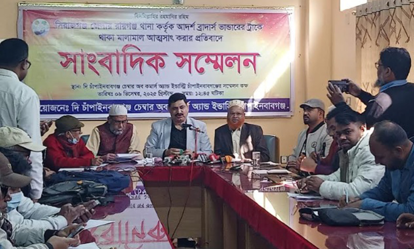 শনিবার (৬ ডিসেম্বর) দুপুরে চাঁপাইনবাবগঞ্জ চেম্বার অব কমার্স অ্যান্ড ইন্ডাস্ট্রিতে সংবাদ সম্মেলনে এ অভিযোগ করা হয়।