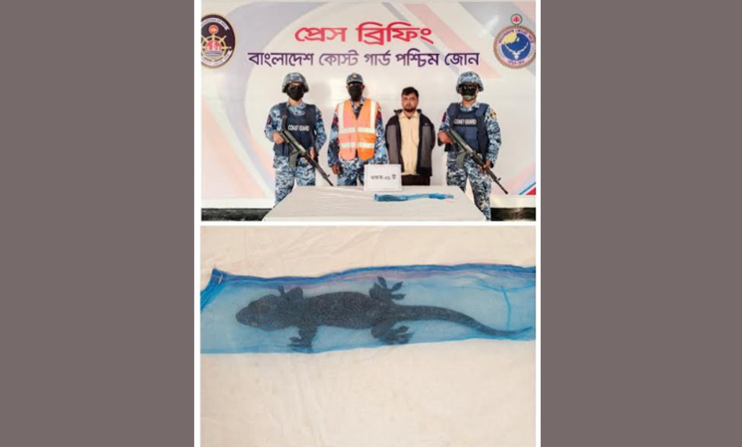 লে. কমান্ডার মো. মুনতাসির ইবনে মহসীন জানান, শনিবার (৬ ডিসেম্বর) দুপুরে গোপন সংবাদের ভিত্তিতে কোস্টগার্ড বেইস মোংলার একটি টিম মোংলা বাসস্ট্যান্ড সংলগ্ন এলাকায় একটি বিশেষ অভিযান পরিচালনা করে। এসময় বিরল প্রজাতির একটি তক্ষকসহ পাচারকারী খোকনকে আটক করা হয়।