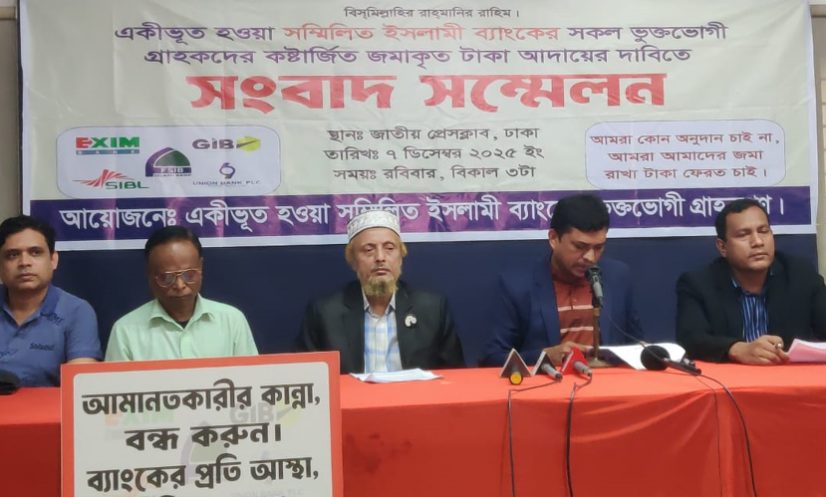 সম্মিলিত ইসলামী ব্যাংকের ক্ষতিগ্রস্ত গ্রাহকদের সংবাদ সম্মেলন। ছবি: সংগৃহীত