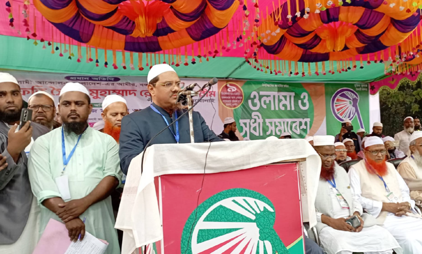 মঙ্গলবার (৯ ডিসেম্বর) বিকেলে খুলনার রূপসা উপজেলার শ্রীফলতলা ইউনিয়নের পালেরহাট মাঠে ইসলামী আন্দোলন বাংলাদেশ খুলনার রূপসা উপজেলা শাখার আয়োজিত ওলামা ও সুধী সমাবেশে প্রধান অতিথির বক্তৃতায় তিনি এ কথা বলেন।